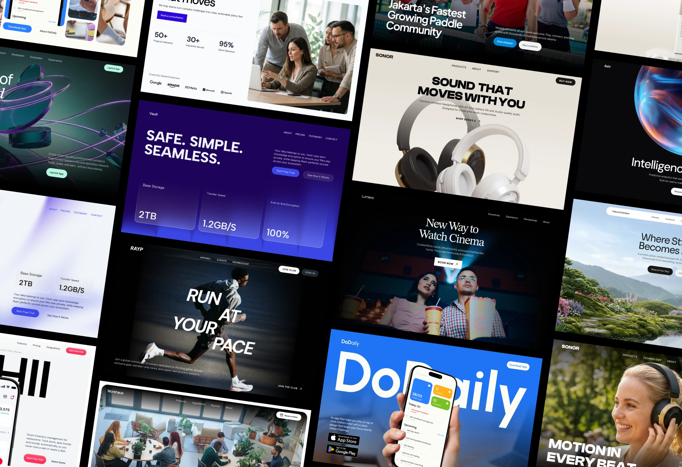 Dari 2020 sampai sekarang udah ngerjain 40+ projek design website untuk klien lokal dan internasional.